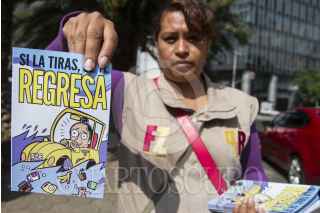 MÉXICO, D.F., 17AGOSTO2014.- Los asambleístas Polimnia Romana Sierra Bárcena y Roberto Candia Ortega, acompañados de un grupo de colaboradores, repartieron volantes con información para evitar que la gente tire basura en la calle, ya que esto provoca inundaciones. El acto informativo tuvo lugar en la esquina de Insurgentes y Barranca del Muerto. FOTO: ISAAC ESQUIVEL /CUARTOSCURO.COM