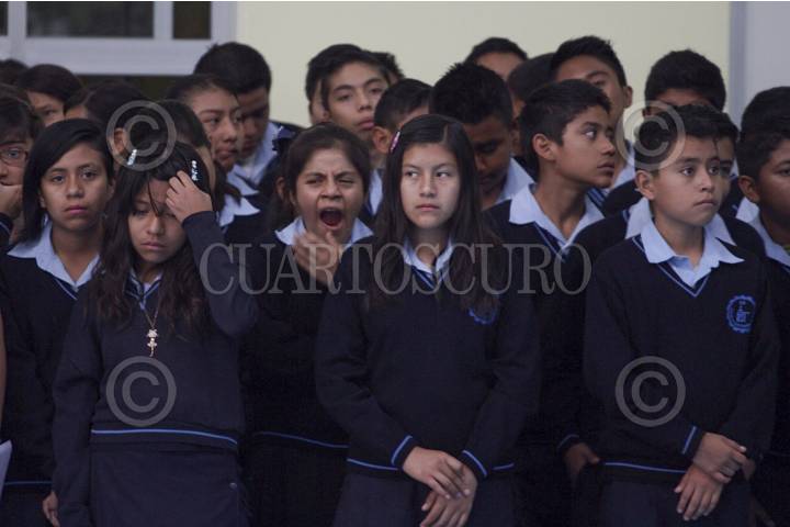 OAXACA, OAXACA, 18AGOSTO2014.- Ruben Nuñez, Secretario General de la Sección 22 de la CNTE junto a Gabino Cué, Gobernador del estado durante la ceremonia de inicio de clases del nuevo ciclo escolar 2014-2015 en la escuela Secundaria Técnica número 64. FOTO: ARTURO PÉREZ ALFONSO /CUARTOSCURO.COM