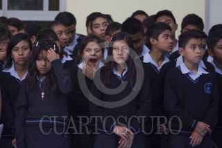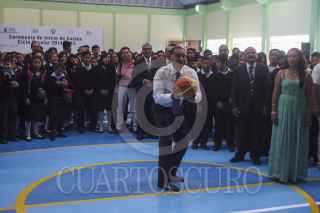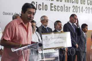OAXACA, OAXACA, 18AGOSTO2014.- Ruben Nuñez, Secretario General de la Sección 22 de la CNTE junto a Gabino Cué, Gobernador del estado durante la ceremonia de inicio de clases del nuevo ciclo escolar 2014-2015 en la escuela Secundaria Técnica número 64. FOTO: ARTURO PÉREZ ALFONSO /CUARTOSCURO.COM
