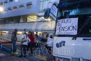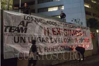 MÉXICO, D.F., 18AGOSTO2014.- integrantes de la Asociación de Jubilados, Trabajadores y ex Trabajadores de Mexicana de Aviación bloquearon el acceso al Banco Nacional de Comercio Exterior, en demanda del pago de sus pensiones y un lugar en el Comité Técnico del Fideicomiso con el que se fondean los apoyos para los trabajadores de la empresa. FOTO: ISAAC ESQUIVEL /CUARTOSCURO.COM