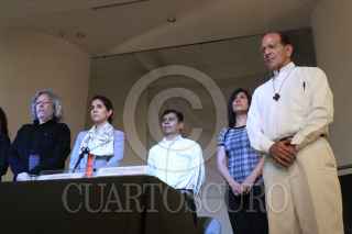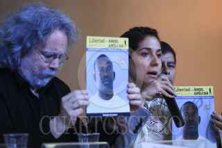 MÉXICO, D.F., 19AGOSTO2014.- Organizaciones civiles se pronunciaron en el aniversario de la masacre de migrantes centroamericanos en San Fernando, Tamaulipas. El padre Alejandro Solalinde encabezó un minuto de silencio y pidieron por un marco de legalidad en torno al trato que se los migrantes que pasan por un nuestro territorio rumbo hacia Estados Unidos. Tal es es el caso de Ángel Amílcar, hondureño que esta preso en el Cefereso de Tepic, acusado de delitos relacionados con delincuencia organizada, cuando en realidad era una personas que buscaba llegar a Estados Unidos para ayudar a su hijo que tenía y cáncer y que al final murió por esta enfermedad. FOTO: MOISÉS PABLO /CUARTOSCURO.COM