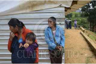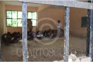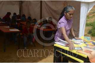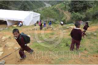 ZONTECOMAPA, MUNICIPIO DE ACATEPEC, 19AGOSTO2014.- Estudiantes indígenas Me´phaas de la comunidad de Zontecomapa, ha iniciado el ciclo escolar tomando clases en aulas improvisadas con palos y láminas construidas por sus padres. Sus escuelas fueron sepultadas por las tormentas tropicales Ingrid y Manuel y a casi un año del desastre natural continúan sin recibir la ayuda prometida por el gobierno. En ese sentido los padres de familia y la autoridad de la comunidad dieron un plazo de 15 a 20 días para que agilicen los trabajos de construcción de al nueva escuela, sino, advirtieron regresaran a su anterior escuela la cual esta enterrada y responsabilizaron a las autoridades de los tres niveles de cualquier accidente que pueda ocurrirles a sus hijos. Zomtecomapa está ubicado en el municipio de Acatepec en la Montaña alta de Guerrero con una población aproximada mil 500 habitantes. En septiembre pasado fue afectada por las torrenciales lluvias la escuela primaria Lázaro Cárdenas, el albergue regional Vicente Guerrero, así como, afectaciones en el jardín de niños, Ignacio Manuel Altamirano y la escuela secundaria Sor Juana Inés de la Cruz. También sufrió daños el Centro de salud que arraso con el consultorio por completo y ahora tienen que caminar casi tres horas a la cabecera municipal para poder ser atendidos. FOTO: BERNANDINO HERNÁNDEZ /CUARTOSCURO.COM