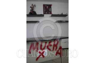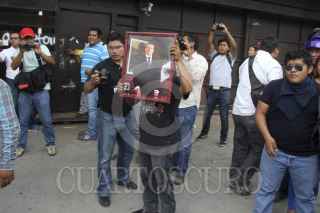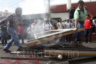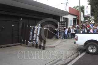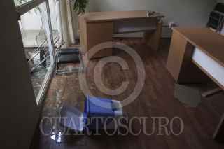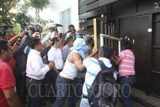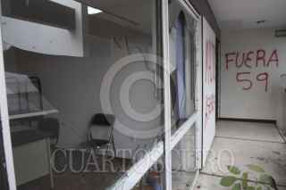 OAXACA, OAXACA, 19AGOSTO2014.- Profesores de la sección 22 de la CNTE bandalizaron las instalaciones de la sección 59 del SNTE, esto en represalia por la retención de 5 profesores en la comunidad de Flor Batavia ubicada en la región de la Cañada, quienes hasta la noche de este miércoles aún continúan privados de su libertad. Los manifestantes quitaron por la fuerza las rejas y abrieron la puerta para después realizar diversos destrozos en el interior de la oficina. FOTO: ARTURO PÉREZ ALFONSO /CUARTOSCURO.COM