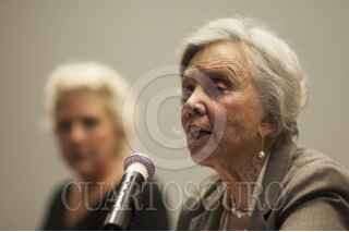 MÉXICO, D.F., 21AGOSTO2014.- La escritora Elena Poniatowska acudió a la presentación del libro "Ladydi" de Jennifer Clement en la biblioteca Rosario Castellanos. FOTO: IVÁN STEPHENS /CUARTOSCURO.COM