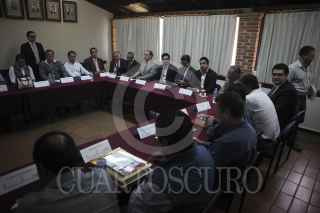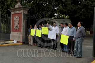 MORELIA, MICHOACÁN, 21AGOSTO2014.- Presidentes municipales de extracción perredista bloquearon la puerta de Casa de Gobierno exigiendo ser recibidos por el gobernador, Salvador Jara Guerrero, para exigirle la entrega de recursos etiquetados para la obra convenida. Esto después de sostener una reunión con el Secretario de Finanzas y el titular del Centro de Desarrollo Municipal. FOTO: ALAN ORTEGA /CUARTOSCURO.COM