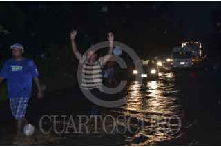 ACAPULCO, GUERRERO, 21AGOSTO2014.- Fuertes lluvias provocaron la creciente del arroyo del Cerrito de Oro, que desbordó sus aguas sobre la carretera federal Acapulco-Zihuatanejo, ocasionando la suspensión de la circulación al puerto en su acceso por Pie de la Cuesta; vehículos particulares y del servicio público quedaron varados sobre la carpeta asfáltica. Al menos cuatro automóviles fueron arrastrados por las fuertes aguas provocadas por las precipitaciones pluviales. En la imagen, algunos usuarios de transporte público optaron por descender e irse caminando hacia sus destinos. FOTO: BERNANDINO HERNÁNDEZ /CUARTOSCURO.COM