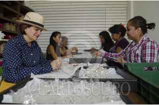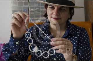 MÉXICO, D.F., 23AGOSTO2014.- La diseñadora de joyería en plata, Delia González, originaria de Taxco, Guerrero, ensambla junto con su equipo de trabajo, conformado por cinco mujeres taxqueñas, un pedido de última hora. "Originalmente lo habían pedido a China, pero por cuestión de tiempo decidieron trabajar con productores mexicanos", menciona la diseñadora con respecto a la problemática que existe en la actualidad pues la producción china es la principal competencia de la plata nacional. FOTO: MARÍA JOSÉ MARTÍNEZ /CUARTOSCURO.COM