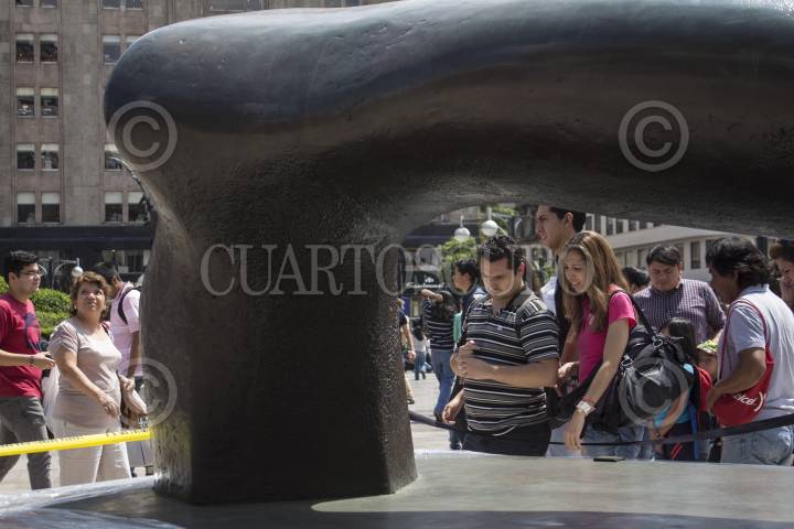 MEXICO, D.F., 23AGOSTO2014.- El pasado jueves 22 de agosto se instaló la escultura "Figura Reclinada", de Henry Moore, en la explanada del Palacio de Bellas Artes, en el marco de la exposición "En esto ver aquello. Octavio Paz y el arte". FOTO: DAVID POLO /CUARTOSCURO.COM