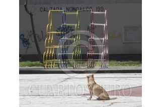 MEXICO, D.F, 23AGOSTO2014.- Un perro descansa, solitario, en un parque de la unidad habitacional Tlatelolco. Al medio día vecinos se reunieron para dar un recorrido por los sitios de más tradición de este complejo habitacional. FOTO: DAVID POLO /CUARTOSCURO.COM