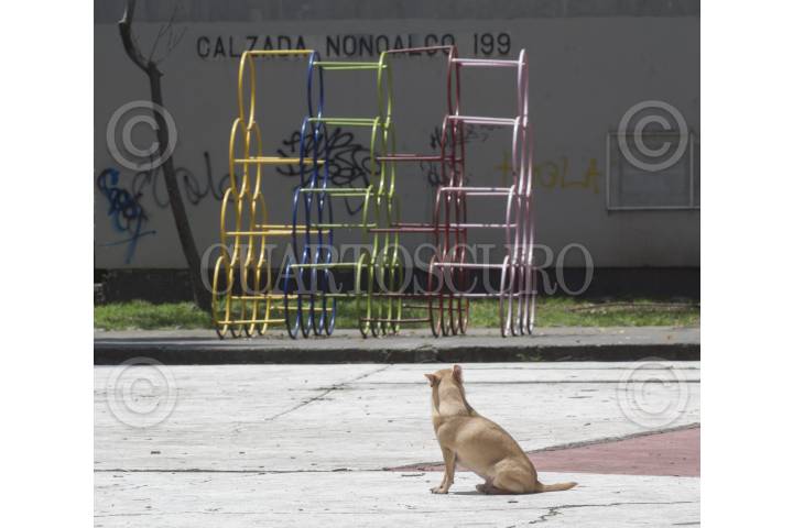 MEXICO, D.F, 23AGOSTO2014.- Un perro descansa, solitario, en un parque de la unidad habitacional Tlatelolco. Al medio día vecinos se reunieron para dar un recorrido por los sitios de más tradición de este complejo habitacional. FOTO: DAVID POLO /CUARTOSCURO.COM