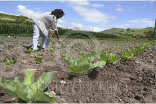 GUERRERO, ZITALA., 23AGOSTO2014.- Mujeres campesinas trabajan la tierra desde que sale el sol hasta que se oculta. Este año sembraron col, frijol y un poco de maíz. Guenaria Salazar Pileño, es una de tantas mujeres que ha puesto toda su esperanza en la venta de la verdura que cosecho con tanto esfuerzo para mantener a sus ocho hijos y sobre todo, para poder seguir apoyando al único hijo que esta estudiando la universidad, Jorge Tecuapa Salazar. Después de que los huracanes Manuel e Ingrid devastaron su comunidad, la ayuda del gobierno no ha llegado a Zitala, así lo señalo Guenaria. FOTO: BERNANDINO HERNÁNDEZ /CUARTOSCURO.COM