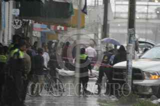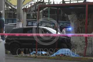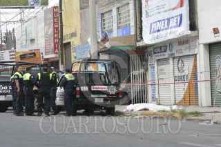 ECATEPEC, EDOMEX, 23AGOSTO2014.- Un automovilista, un policía y un ladrón murieron en un intento de asalto, en calles de la Colonia Arboledas de Aragón, de este municipio. Datos preliminares de las autoridades detallan que un sujeto de aproximadamente 40 años que circulaba sobre la Avenida Central, a la altura de la calle Valle del Don, a bordo de un vehículo Almera, placas 219-SLZ, fue interceptado para ser víctima de un atraco. El hombre de quien se desconoce identidad, se negó a entregar el vehículo, por lo que fue baleado de muerte, al ser perseguido por un policía estatal choca el vehículo en la esquina de valle de Guadiana y avenida Central, el oficial y el supuesto delincuente intercambiaron balazos, muriendo ambos. FOTO: LUIS CARBAYO /CUARTOSCURO.COM