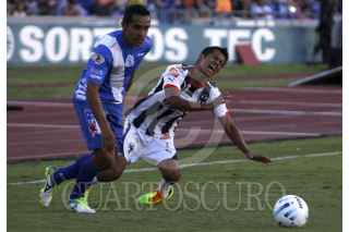 MONTERREY, NUEVO LEÓN, 23AGOSTO2014.- Jesús Zavala del equipo de los Rayados en una jugada contra Mauricio Romero del equipo del Puebla, en el estadio tecnológico, partido correspondiente a la jornada 6 de la Apertura 2014 de la Liga MX. FOTO: GABRIELA PÉREZ MONTIEL /CUARTOSCURO.COM