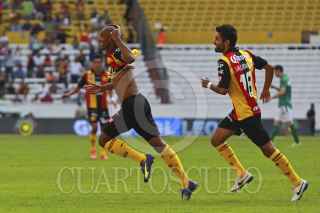 GUADALAJARA, JALISCO, 24AGOSTO2014.- Los Leones Negros de la Universidad de Guadalajara vencieron un gol a cero a los Esmeraldas del León en el partido correspondiente a la Jornada 6 del Torneo de Apertura 2014. En la imagen el jugador de Leones Negros, Fidel Martínez celebra su anotación. FOTO: FERNANDO CARRANZA GARCIA /CUARTOSCURO.COM