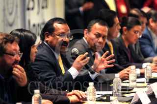 MÉXICO, D.F. 24AGOSTO2014.- Alejandro Sánchez Camacho, secretario general del PRD, Jesús Zambrano Grijalva, presidente nacional del PRD y Silvano Aureoles Conejo, coordinador del grupo parlamentario del PRD, presidieron el primer día de la "Reunión Plenaria del Grupo Parlamentario del PRD, preparatoria para el Primer Periodo del Tercer Año de Ejercicio de la LXII Legislatura de la Cámara de Diputados", realizado en el Hotel Hilton. FOTO: ADOLFO VLADIMIR /CUARTOSCURO.COM
