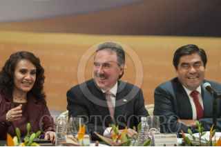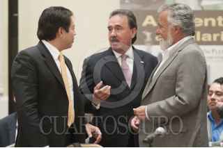 MÉXICO, D.F., 25AGOSTO2014.- Emilio Gamboa Patrón, coordinador del grupo parlamentario del PRI en el Senado de la República; y Miguel Barbosa Huerta, coordinador del grupo parlamentario del PRD en el Senado; durante la Reunión Plenaria del Grupo Parlamentario del PRD en el Senado de la República. FOTO: IVÁN STEPHENS /CUARTOSCURO.COM