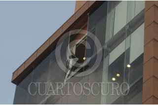 MEXICO, D.F., 26AGOSTO2014.- Un ventanal del Edificio de Relaciones Exteriores fue retirado por bomberos. Los hechos ocurrieron en la calle de Independencia y Luis Moya, en la colonia Centro. FOTO: LUIS CARBAYO /CUARTOSCURO.COM