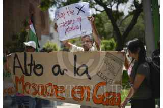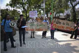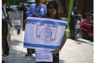 MÉXICO, D.F., 26AGOSTO2014.- Estudiantes del Comité Estudiantil en Defensa de la Educación Pública (CEDEP) y personas en lo individual, se manifestaron en las inmediaciones de la embajada de Israel en protesta por los ataques del ejército judío en la franja de Gaza. FOTO: ADOLFO VLADIMIR /CUARTOSCURO.COM