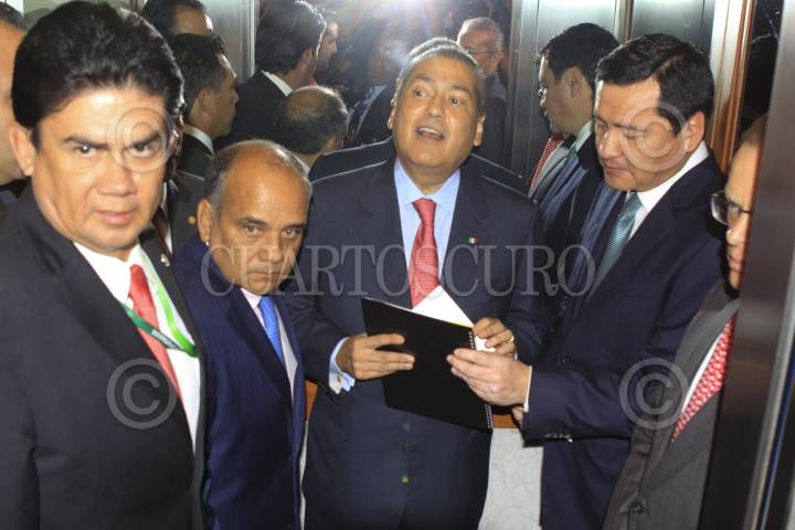 MÉXICO, D.F., 27AGOSTO2014.- El Secretario de Gobernación Miguel Ángel Osorio Chong y Manlio Fabio Beltrones tras participar en la V Reunión Plenaria de los Diputados del PRI. FOTO: MOISÉS PABLO /CUARTOSCURO.COM