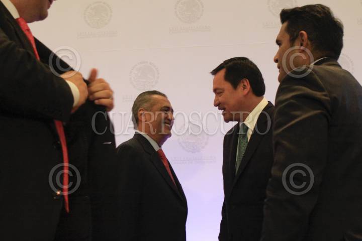 MÉXICO, D.F., 27AGOSTO2014.- El Secretario de Gobernación Miguel Ángel Osorio Chong y Manlio Fabio Beltrones tras participar en la V Reunión Plenaria de los Diputados del PRI. FOTO: MOISÉS PABLO /CUARTOSCURO.COM