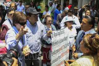 MÉXICO, D.F., 27AGOSTO2014.- Vecinos de Polanco se manifestaron en la calle de Aristóteles y Presidente Masaryk por las obras de remodelación que se realizan por esta última vialidad, ya que consideran que no traerán ningún beneficio y al contrario se esta afectado a los comercios establecidos a demás de que se están talando árboles sanos, los inconformes bloquearon y marcharon por calle aledañas de este punto, lo que provocó la molestia de varios conductores que se bajaron de sus autos para hacerse de palabras con los vecinos. Humberto Morgan autoridad de la delegación Miguel Hidalgo intentó dialogar pero fue rechazado por los polanquenses. FOTO: MOISÉS PABLO /CUARTOSCURO.COM