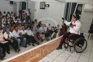 TENOSIQUE, TABASCO, 27AGOSTO2014.- María de los Ángeles Ortiz Hernández, campeona paralímpica y bicampeona mundialista ofreció una conferencia titulada “Detrás de la Medalla” en el auditorio universitario de la división de los Ríos de la UJAT. Ahí la campeona internacional dijo ante estudiantes que ya pensó en su retiro deportivo para este próximo 2016, dejando en claro que se siente demasiado satisfecha por todos los logros obtenidos por México y mexicanos. FOTO: MARCO POLO GUZMÁN HERNÁNDEZ /CUARTOSCURO.COM