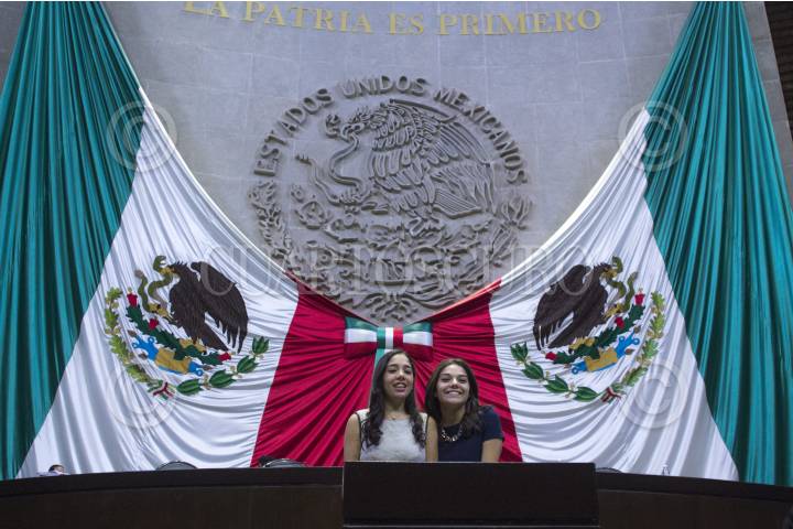 MÉXICO, D.F., 28AGOSTO2014.- Las dos hijas de Silvano Aureoles, se tomaron una fotografía al termino de la sesión preparatoria del Tercer año de Ejercicios de la LXII Legislatura donde fue nombrado como Presidente de la Mesa Directiva de la Cámara de Diputados. FOTO: ENRIQUE ORDÓÑEZ /CUARTOSCURO.COM