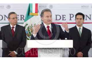 MÉXICO, D.F., 28AGOSTO2014.- Pedro Joaquín Coldwell, Secretario de Energía, presentó a los que serán los nuevos directores del Centro Nacional de Gas Natural (CENAGAS), David Madero Suárez y del Centro Nacional de Control de Energía (CENACE), Eduardo Meraz Ateca. En la conferencia de prensa estuvo presente Eduardo Sánchez, Vocero de Presidencia de la República. FOTO: CUARTOSCURO.COM