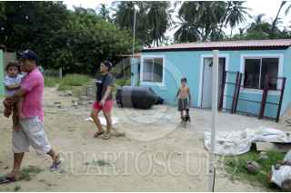 COYUCA DE BENÍTEZ, GUERRERO, 38AGOSTO2014.- Damnificados de la tormenta Manuel de las colonias Tierra Digna, Zumpango y Cimientos de la Cabecera municipal que recibieron hace dos meses sus viviendas construidas por la Sedatu denunciaron la mala calidad de las edificaciones construidas una vez que registran levantamiento del piso, puertas y ventanas en mal estado y la no colocación de los biodigestores quienes los mismos propietarios los estan colocando. FOTO: BERNANDINO HERNÁNDEZ /CUARTOSCURO.COM