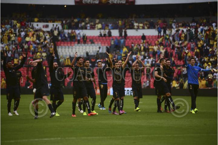 MÉXICO, D.F., 30AGOSTO2014.- Los Pumas se impusieron al América 1-0, con este vitoria le quita lo invicto a los de Coapa, en la imagen Leandro Valle se disputa un balón con el americanista Moisés Adrián Velasco, en la cancha del Estadio Azteca. FOTO: ISABEL MATEOS /CUARTOSCURO.COM