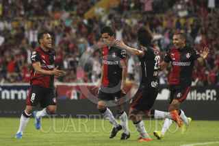 GUADALAJARA, JALISCO, 30AGOSTO2014.- Esta noche en el Estadio Jalisco de esta y en partido correspondiente a la Jornada 7 del Torneo Apertura 2014 de la Liga MX, se enfrentan los equipos de los Zorros del Atlas frente a Santos Laguna de Torreón. En la imagen Edy Brambila de los rojinegros celebra su anotación. FOTO: FERNANDO CARRANZA GARCIA /CUARTOSCURO.COM