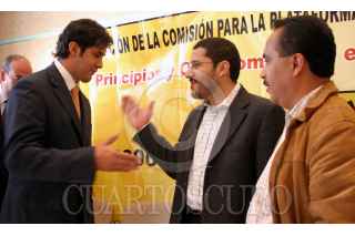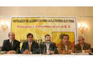 MEXICO, D.F., 03FEBRERO2006.- Juan Manuel Avila, Alejandro Ramírez, PT, Martí Batres, presidente del PRD DF, Germán Yescas e Iván García Solís, diputado PRD, durante la instalación de la Comisión para la Plataforma Electoral de la coalición PT-PRD y Convergencia. FOTO: Moisés Pablo/CUARTOSCURO.COM