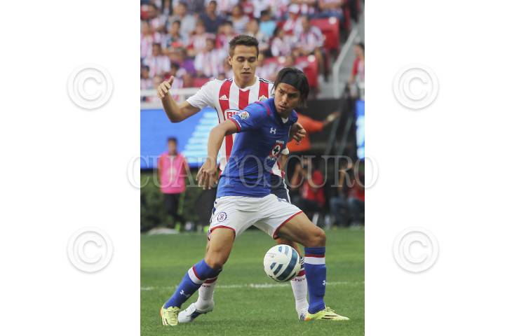 ZAPOPAN, JALISCO, 31AGOSTO2014.- Esta tarde en el Estadio Omnilife y en partido correspondiente a la Jornada 7 del Torneo Apertura 2014 de la Liga MX, empataron a cero las Chivas de Guadalajara frente a Cruz Azul. En la imagen el jugador de Chivas Omar Bravo se lamenta por desperdiciar una oportunidad de gol. FOTO: FERNANDO CARRANZA GARCIA /CUARTOSCURO.COM