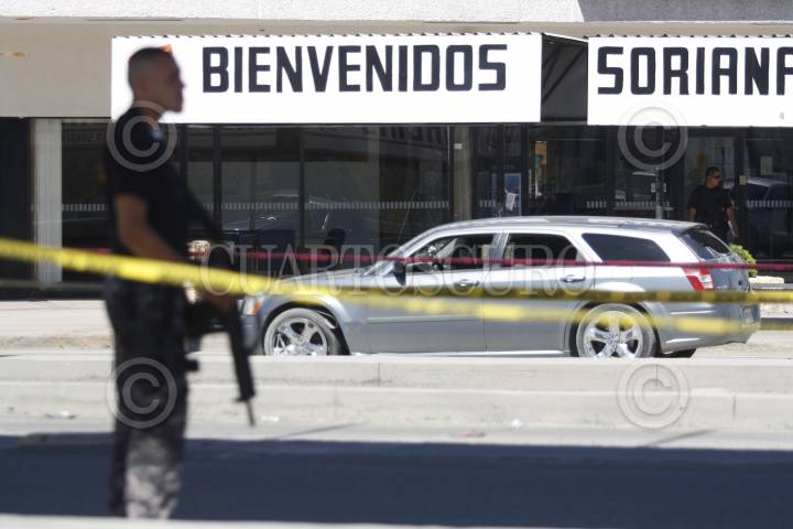 CIUDAD JUÁREZ, CHIHUAHUA, 01SEPTIEMBRE2014.- Dos personas fueron acribilladas cuando caminaban por el parque que se ubica sobre la calle Insurgentes a la altura de la calle Juan de Dios Olivas por un grupo de hombres armados que les dispararon a quemarropa desde un automóvil en movimiento. De acuerdo a los testigos del hecho, los agresores eran 4 hombres que circulaban en un carro color gris, según dieron a conocer a los cuerpos policíacos que arribaron al lugar. Una de las víctimas murió en el lugar, mientras que la segunda resultó con heridas de gravedad y fue trasladado a un nosocomio para su atención. FOTO: NACHO RUIZ /CUARTOSCURO.COM