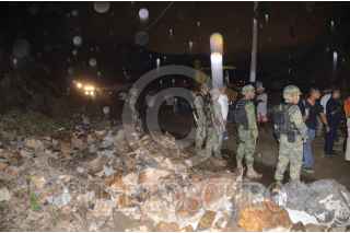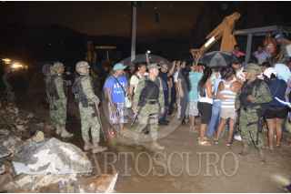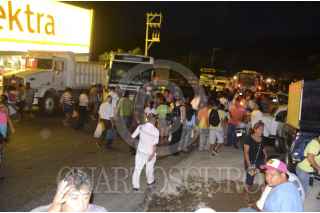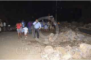 ACAPULCO, GUERRERO, 03SEPTIEMBRE2014.- El uso de dinamita en las obras de ampliación de la carretera Mozimba a Pie de la Cuesta en el municipio de Acapulco provocó el desgajamiento del cerro a la altura del punto conocido como Frente del Diablo que tapó el paso durante horas a ese centro turístico proveniente por la Costa Grande, también provocó el corte del suministro de energía eléctrica en las colonias Jardín Mangos, Jardín Palmas y Jardín Azteca, y Ex Campo de Tiro. Los hechos se registraron alrededor de las 6 de la tarde, cuando trabajadores de la empresa constructora causaron una detonación para derribar parte del cerro que obstaculizaba el levantamiento de un puente, pero no contaron con el desgajamiento del cerro sobre la carretera donde quedaron esparcidas las rocas lo que provocó el corte de la circulación. Del incidente se registró un herido, Eduardo Cano Jiménez de la constructora originario del Distrito Federal que fue trasladado de emergencia a un hospital. El derrumbe provocó que colonos molestos bajaran a la carretera y protestaron en contra del trabajo que están realizando toda vez que es la tercera ocasión que se registra un incidente similar. Los enardecidos colonos tomaron la maquinaria pesada que usa la empresa para las obras e impidieron el retiro de las piedras que bloqueaba la vía federal. FOTO: BERNANDINO HERNÁNDEZ /CUARTOSCURO.COM