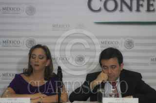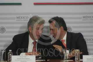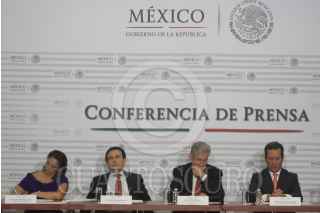 MÉXICO, D.F., 04SEPTIEMBRE2014- La secretaria de Turismo Claudia Ruiz Massieu y los secretarios Ildefonso Guajardo, Economía, Gerardo Ruiz Esparza, Comunicaciones y Transportes y Eduardo Sánchez, Vocero de la Presidencia, ofrecieron una conferencia de prensa en la cual hablaron sobre el proyecto del nuevo aeropuerto. FOTO: MOISÉS PABLO /CUARTOSCURO.COM