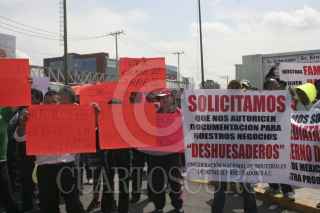 ECATEPEC, EDOMEX, 04SEPTIEMBRE2014.- Mas de un centenar de trabajadores de antros, teiboleras y dueños de deshuesaderos protestaron durante la estancia del Gobernador y Presidente Enrique Peña Nieto, durante la presentación del Programa Prospera, la tarde de este Jueves. El grupo de manifestantes se plantaron sobre un acceso del Tecnológico de Estudios superiores de Ecatepec donde exigieron sean devueltas sus fuentes de trabajo. FOTO: LUIS CARBAYO /CUARTOSCURO.COM