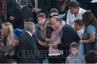 MÉXICO, D.F., 05SEPTIEMBRE2014.- El empresario Miguel Alemán Velasco; Carlos Slim Helú, dueño de Grupo Carso; Margarita Zavala, esposa del ex presidente Felipe Calderón, y María Elena Torruco, esposa de Carlos Slim Domit, durante el evento anual de Fundación Telmex con sus becarios, “México Siglo XXI” en el Auditorio Nacional. FOTO: DIEGO SIMÓN SÁNCHEZ /CUARTOSCURO.COM