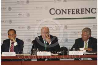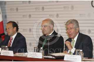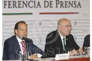 MÉXICO, D.F., 05SEPTIEMBRE2014.- David Korenfeld, director de Conagua y Juan José Guerra Abud, secretario de la Semarnat, dieron a conocer el plan maestro ambiental y el plan hídrico de la construcción del nuevo Aeropuerto Internacional de la Ciudad de México en el Casino Naval. FOTO: MOISÉS PABLO /CUARTOSCURO.COM