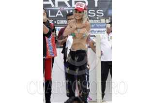 PUEBLA, PUEBLA, 05SEPTIEMBRE2014.- Mariana "Barbie" Juárez durante el pesaje previo a la pelea por el título que sostendrá el día de mañana contra la argentina Carla Weiss en el gimnasio Miguel Hidalgo de la ciudad. FOTO: HILDA RÍOS /CUARTOSCURO.COM