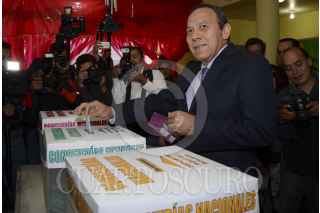 MÉXICO, D.F., 06SEPTIEMBRE2014.- Jesús Zambrano, Dirigente Nacional del PRD durante el momento de su votación en las elecciones del Sol Azteca para designar Congresistas nacionales, así como Consejeros, nacionales, estatales y locales. En la imagen, el ex senador acompañado de su familia. FOTO: CUARTOSCURO.COM