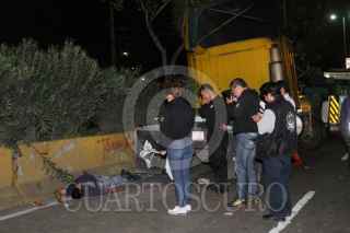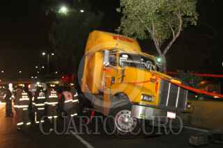 MÉXICO D.F., 07SEPTIEMBRE2014.- El chofer de un tráiler pierde la vida aplastado por su unidad, al impactarse con el muro de contención y salir de la cabina. Los hechos, ocurrieron sobre Ermita Iztapalapa a la altura de la calle 39 en la colonia Santa Cruz Meyehualco en Iztapalapa. FOTO: LUIS CARBAYO /CUARTOSCURO.COM
