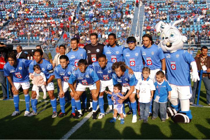 MEXICO, D.F. 04FEBRERO2006.- Manuel de la Torre (Toluca) y Rogelio Chávez (Cruz Azul) disputan un balón durante el partido de la cuarta jornada del torneo de clausura 2006 donde la máquina celeste se impuso 2 a 1. FOTO:Miriam Sánchez/CUARTOSCURO.COM