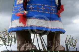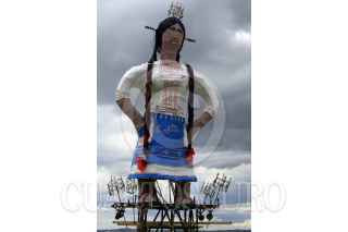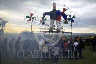 CHOLULA , PUEBLA, 08SEPTIEMBRE2014.- Se llevo a cabo la tradicional "quema de panzones" como parte de la celebración del Día de la Virgen de los Remedios sobre la piramide de Cholula. Cada panzón representa a una figura pública y está hecho de papel china y cuetes y cuyo interior está lleno de manzanas que son lanzadas en el momento de la explosión de los mismos. FOTO: HILDA RÍOS/ CUARTOSCURO.COM