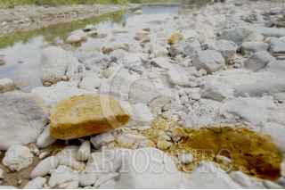 ARIZPE, SONORA, 09SEPTIEMBRE2014.- Personal de Grupo México realiza trabajos de limpia en el Río Sonora, en el tramo ubicado en el municipio de Arizpe. En la imagen, un trabajador se detiene un momento en la tarea titánica de retirar los desechos tóxicos del lecho del río Sonora, derramados el pasado 6 de agosto por una falla en la infraestructura de la mina de Buenavista, concesionada a Grupo México. FOTO: JESÚS BALLESTEROS /EL EXPRESSO DE SONORA /CUARTOSCURO.COM