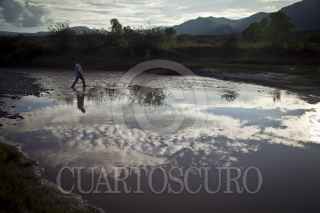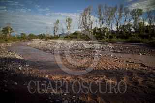 ACONCHI, SONORA, 09SEPTIEMBRE2014.- Aunque los pobladores indican que se realizan muestreos sin embargo el ácido sulfúrico se ha filtrado en las profundidades del río y en algunas partes del río ni siquiera se han comenzado los trabajos de limpieza. En la imagen, tramo del río Sonora en la comunidad de Aconchi, el cual pertenece contaminado desde el pasado 6 de agosto cuando se registró el derrame de 40 mil metros cúbicos de desechos tóxicos en los ríos Bacanuchi y Sonora por una falla en la infraestructura de la mina de Buenavista del Cobre, a cargo de Grupo México. FOTO:RASHIDE FRIAS /CUARTOSCURO.COM