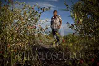 ACONCHI, SONORA, 09SEPTIEMBRE2014.- Marco Antonio Navarro es un productor de chile chiltepin y cacahuate, sin embargo, debido a la contaminación del río se ha complicado la venta de sus productos, ya que las personas creen que no está en buenas condiciones. Así como Navarro hay muchos productores que sufren de la misma problemática, pues aunque las cosechas se encuentren en buen estado, predomina la idea de que están contaminadas. La situación para los agricultores es crítica, ya que el comercio de sus cosechas constituye el principal sustento de las personas que viven en comunidades aledañas al río. FOTO: RASHIDE FRIAS /CUARTOSCURO.COM