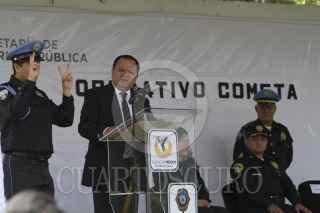 MÉXICO, D.F., 09SEPTIEMBRE2014.- Jesús Rodríguez Almeida, titular de la Secretaria de Seguridad Publica encabezo la presentación del Operativo Cometa en la base Piraña de Tláhuac, donde se realizaron una demostración de la peligrosidad de algunos de los artefactos de la pirotecnia que llegan hacer de gran peligro y la quema de algunos de estos artefactos explosivos recuperados en diversos operativos. FOTO: GUILLERMO PEREA /CUARTOSCURO.COM