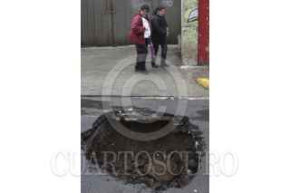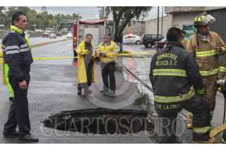 MÉXICO, D.F., 09SEPTIEMBRE2014.- Bomberos de la Ciudad de México y personal de Protección Civil acordonaron un boquete que se abrió sobre la carretera federal México-Toluca a la altura del kilómetro 14 en la delegación Cuajimalapa. FOTO: SAÚL LÓPEZ /CUARTOSCURO.COM