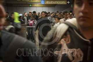 MÉXICO, D.F., 11SEPTIEMBRE2014.-La afluencia de pasajeros es tanta que las instalaciones apenas resultan suficientes para recibir a toda la cantidad de personas que hacen uso del servicio. Hacia el final del trayecto, los camiones de RTP tienen que pasar estaciones sin detenerse por no poder recibir un pasajero más, dejando varados a decenas de usuarios que deben esperar largos tiempos hasta que pase algún camión que abra sus puertas, aunque no tenga espacio, para intentar apretarse y abordar. FOTO: DAVID POLO /CUARTOSCURO.COM